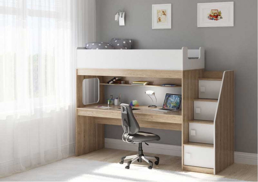 Учебная зона со столом под спальным местом открывает возможности для письменных работ,а также здесь удобно расположить ноутбук.